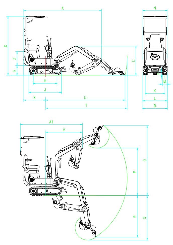 C-Overall height (to top of boom)(mm)(總高 至大臂頂) |