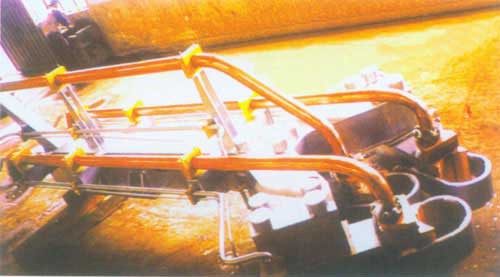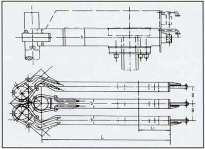 1、導電橫臂供水,回水由設計確定進出水管尺寸,也可按用戶要求于水冷電纜串聯使用;   2、電極分布圓中所列尺寸為本裝置可以提供的分布圓尺寸;   3、新設計電弧爐,鋼包爐可按用戶要求提供導電橫臂;定貨時請提供: