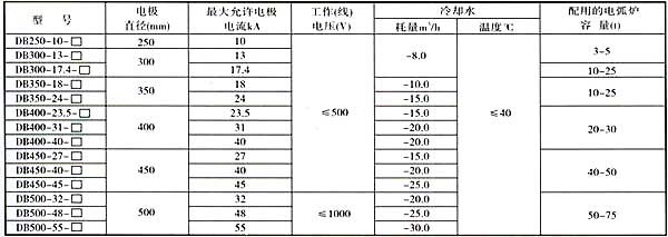 注:1.電極臂長度與電極柱的連接方式按供需雙方協議進行。