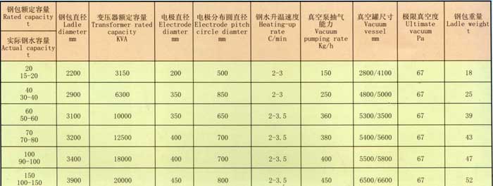 鋼包精練爐技術: 單電極直流鋼包爐 三電極直流鋼包爐 三相交流單臂鋼包爐 銅綱復合導電橫臂 管式水冷爐蓋 微機-液壓調節器 變頻調速-電機調節器 技術參數: