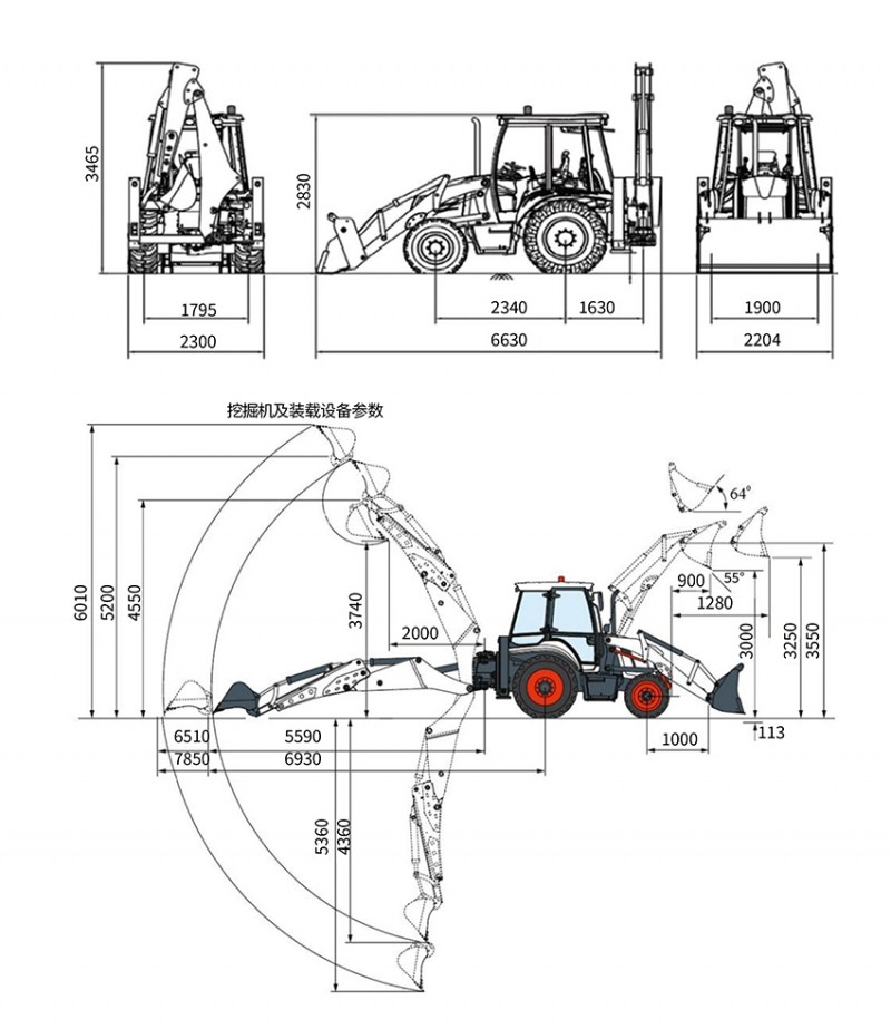 標配Standard:前鏟帶鏟斗,后挖帶挖斗,豪華帶內飾駕駛室/風扇/LED燈/大倒影/破窗錘/滅火器/推拉窗/天窗,暖風,豪華可調式旋轉座椅,可調式儀表盤,液晶顯示屏,液壓先導操作,云內76kw發動機,14-17.5真空前輪胎,19.5L-24真空后輪胎,特制280整體雙高低速變速箱,前輪云宇轉向驅動橋,四輪驅動,A形支腿。